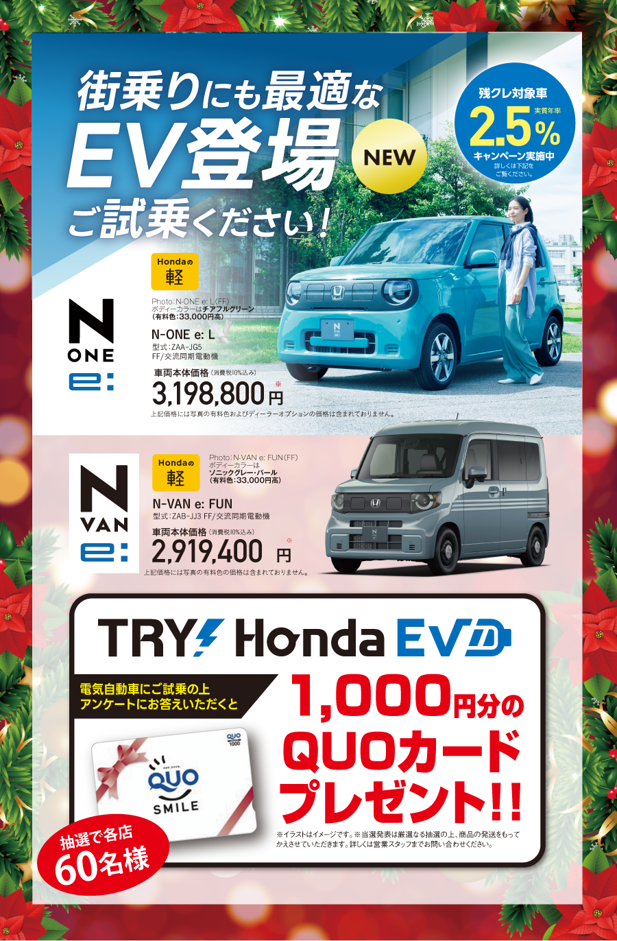 話題の電気自動車を体感するチャンスです!この機会にぜひご試乗ください。ご試乗でQUOカード1,000円分差し上げます!